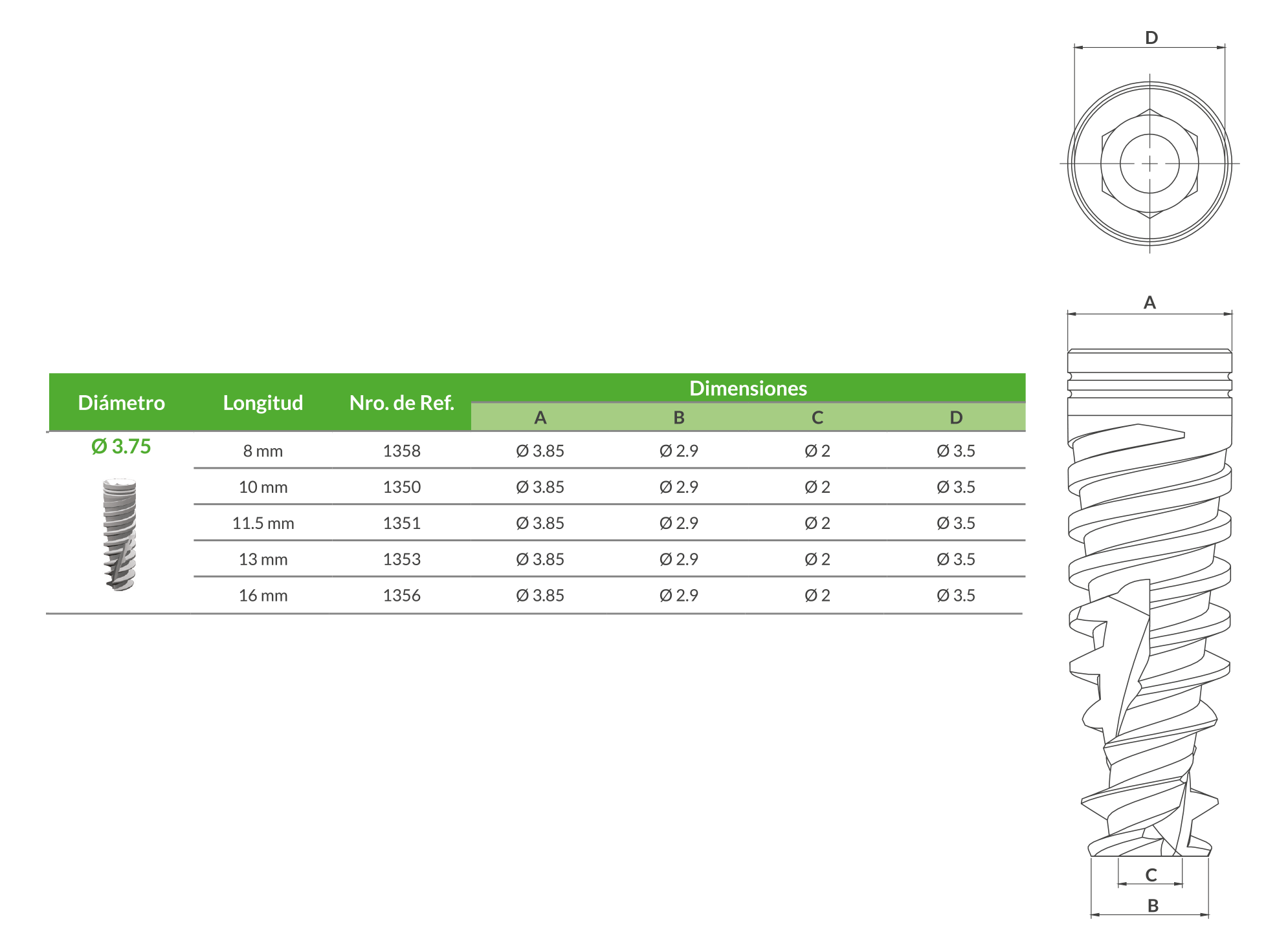 Implante Spiral D 3.75 mm A 8 mm (HI) 1358 Implante Spiral D 3.75 mm A 8 mm (HI) Disponible