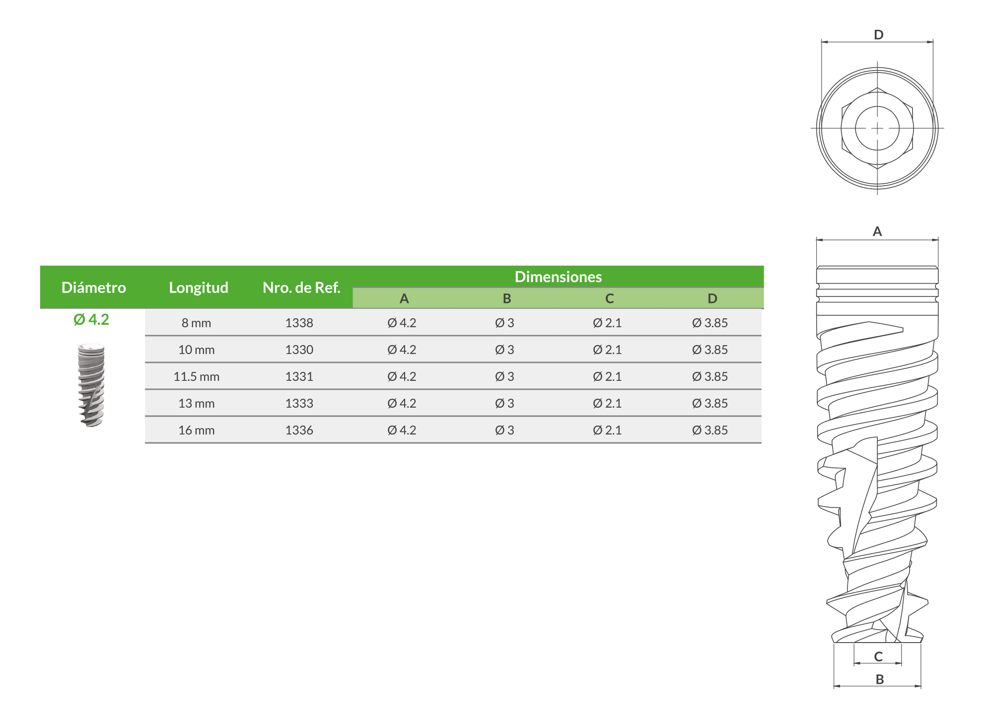 Implante Spiral D 4.2 mm A 8 mm (HI) 1338 Implante Spiral D 4.2 mm A 8 mm (HI) Disponible