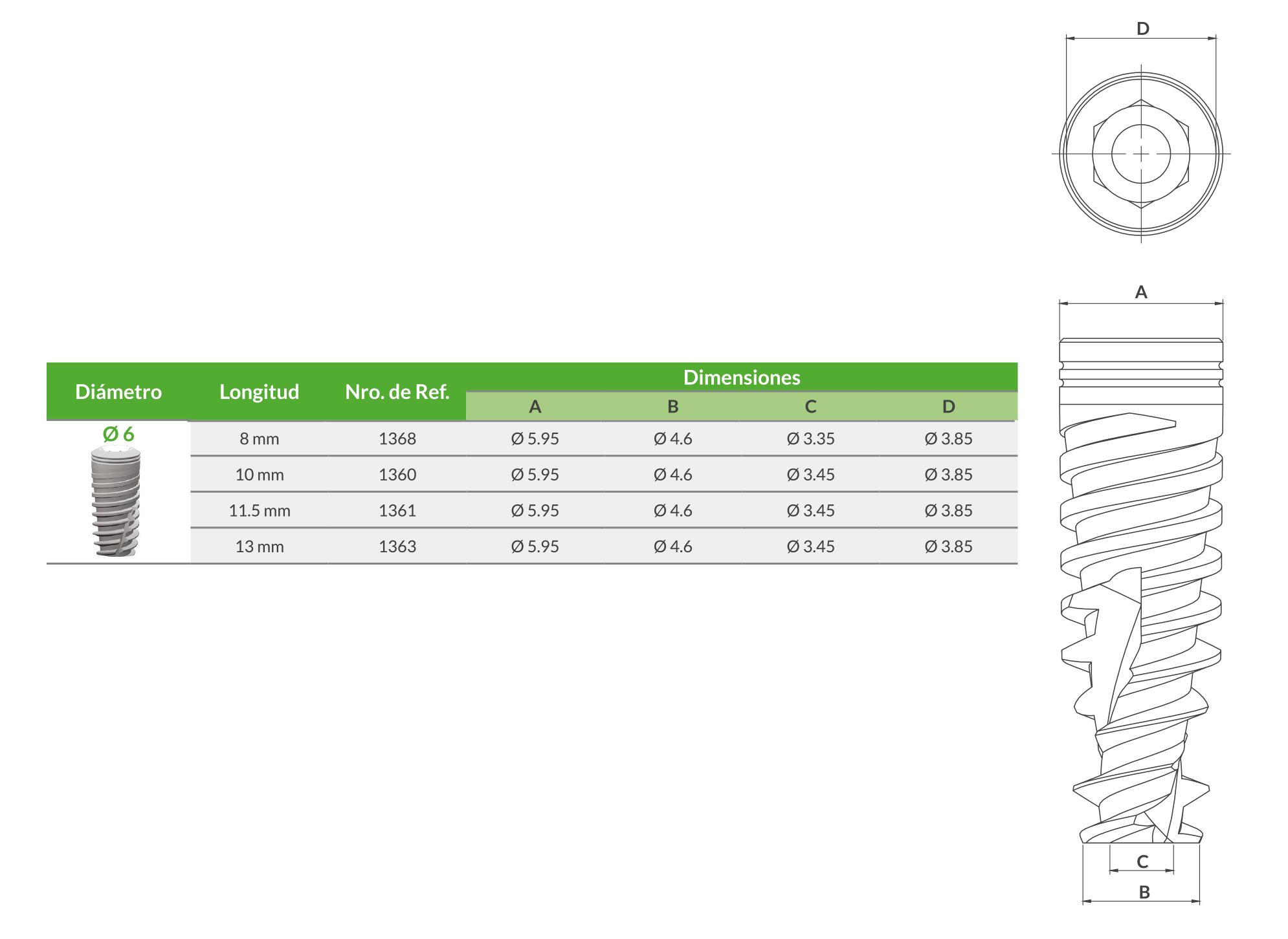 Implante Spiral D 6 mm A 13 mm (HI) 1363 Implante Spiral D 6 mm A 13 mm (HI) Disponible