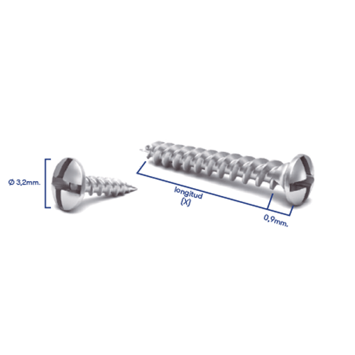 Microtornillos para la fijación de bloques y làminas. Tamaño base 3.2 mm. Tamaño vástago 1.2 mm. Longitud 14 mm.