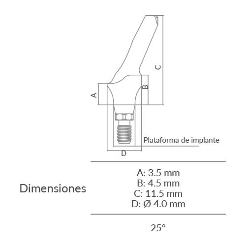7368 | Pilar estético angulado anatómico 25° D 4 mm A 4.5-11.4 mm (CHC) | Disponible |