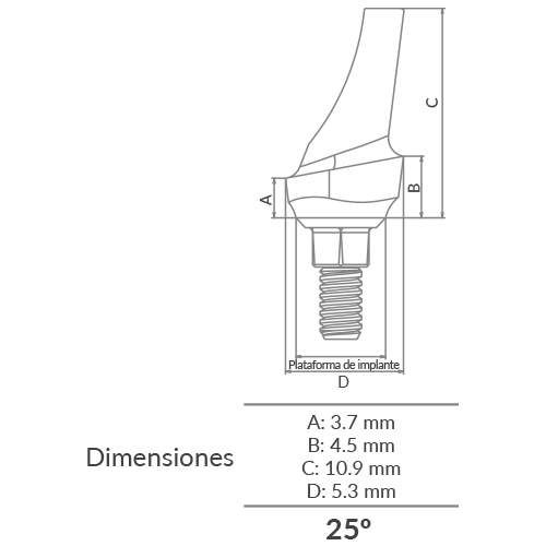 5414 | Pilar estético angulado anatómico 25° D 5.3 mm A 2.5-9.9 mm (HI) | Disponible | |