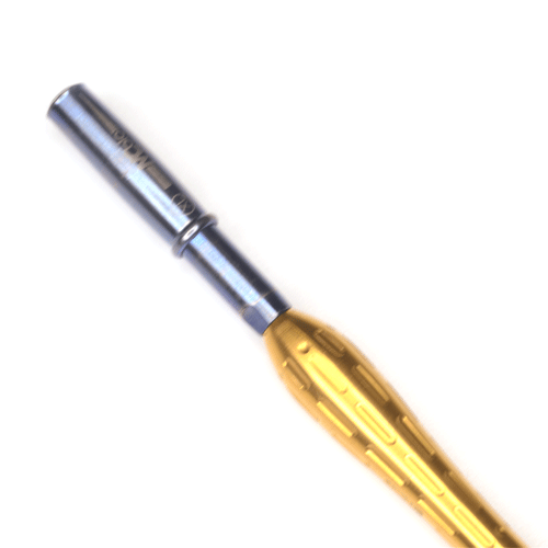 Rascador de hueso completo que incluye mando, recolector y cuchilla. El mango está elaborado a partir de una aleación aeronáutica ultraresistente, el recolector de titanio y óxido de titanio y la cuchilla de acero inoxidable reforzado. Base de 8 mm. Tamaño XL