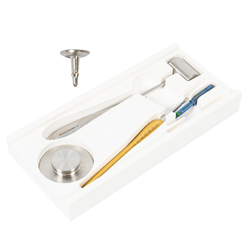 Para completar tus regeneraciones, te ofrecemos una selección de chinchetas y tornillos de fijación fabricadas en titanio grado 5, de diferente longitud y adaptadas según la dureza del hueso del paciente, para técnicas regenerativas simples y complejas. Ponemos a tu disposición también aplicadores y kits de colocación completos.